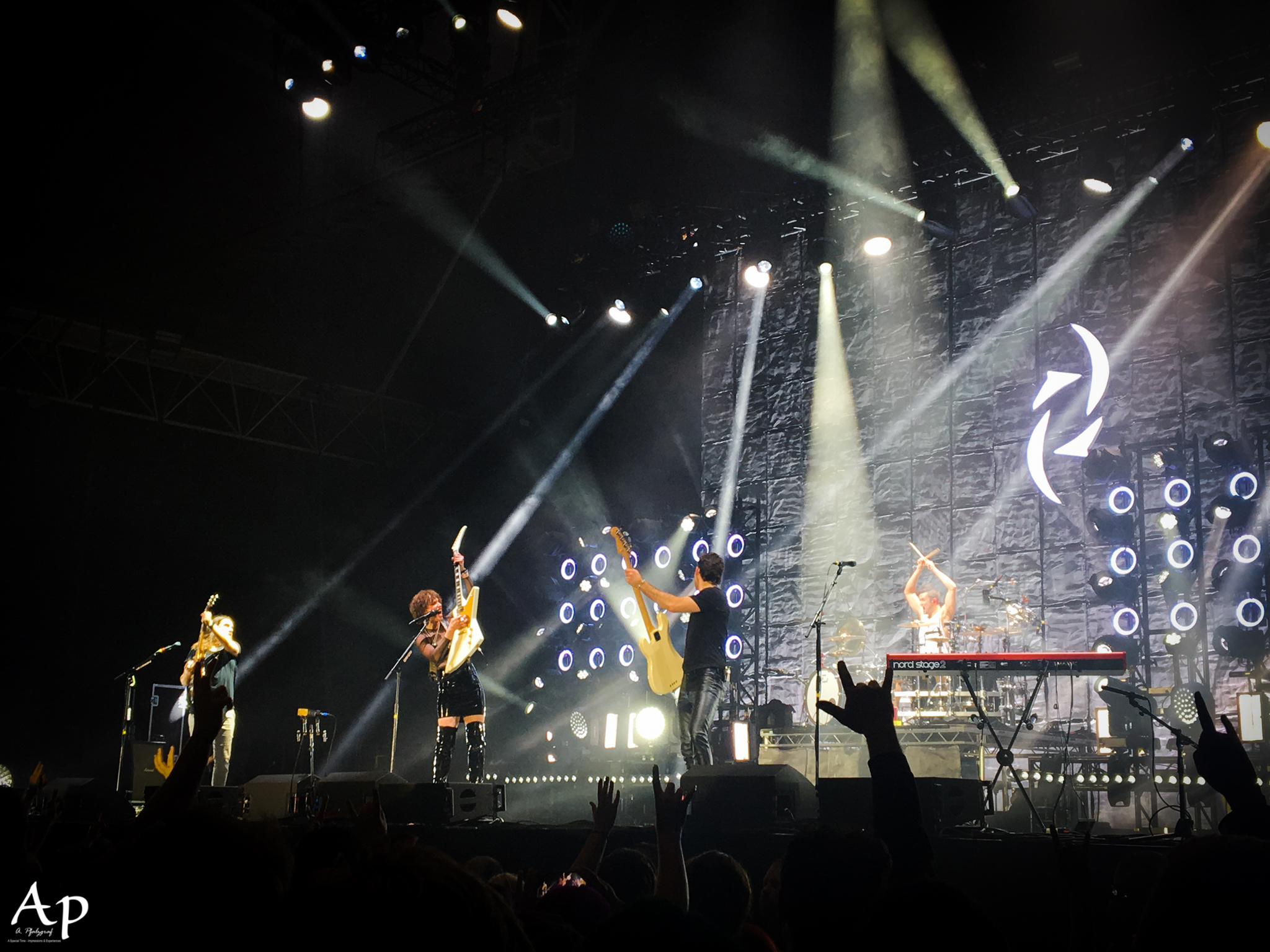 The doors of the Alexandra Palace (Ally Pally) opened around 7pm letting the excitedly waiting fans quickly fill the space in front of the stage. First band of the evening was the American rock band New Years Day comprising vocalist Ash Costello, bot guitarist Nikki Misery and Austin Ingerman, as well as bassist Frankie Sil just released their fourth album ‘Unbreakable’ (Another Century) earlier in 2019 and mixes elements from gothic metal, hard rock, post-hardcore and alternative metal. The quartet captured the crowd’s attention right from the start and got them warmed up for the next band of the evening.