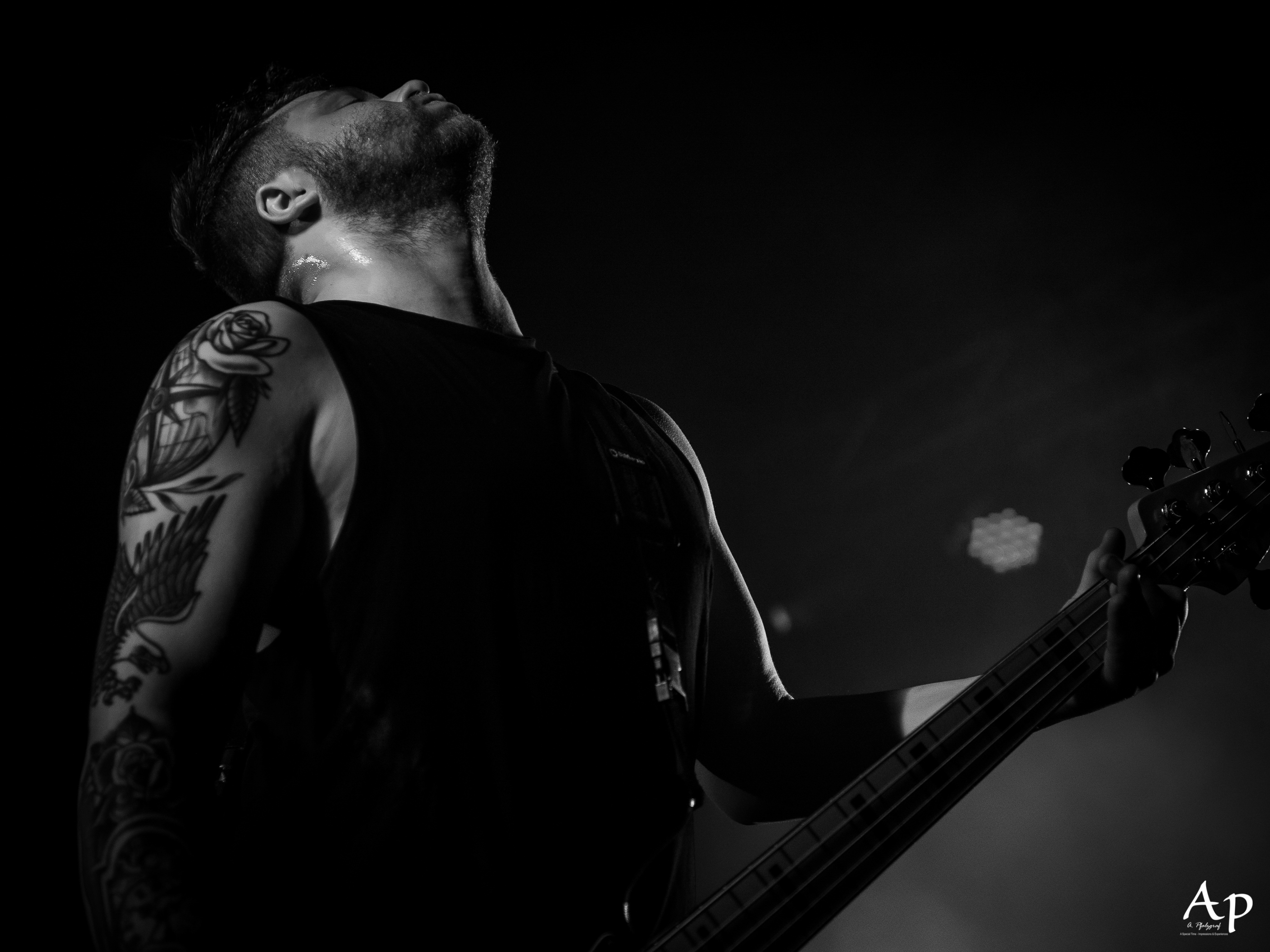 Next up was the post-hardcore quartet Skywalker comprising vocalist Jay, bassist Tom, guitarist David and drummer Damian. The band’s sound is a mix of heavy riffs and breakdowns in alternation with catchy melodies, supporting deep and personal lyrics. Their dark and energetic sound got the crowd hooked and prepared them for the final band of the night.